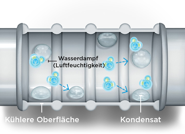 Die Schlauchsysteme verfügen über die Evaqua 2-Technologie, die es ermöglicht, überschüssige Feuchtigkeit durch die Schlauchwand entweichen zu lassen, ehe sie kondensiert. Wasserfallen sind dadurch überflüssig. Der Evaqua 2-Exspirationsschlauch des Beatmungsschlauchsystems ist aus einem Material hergestellt, das aus Millionen durchlässiger Zellen besteht.