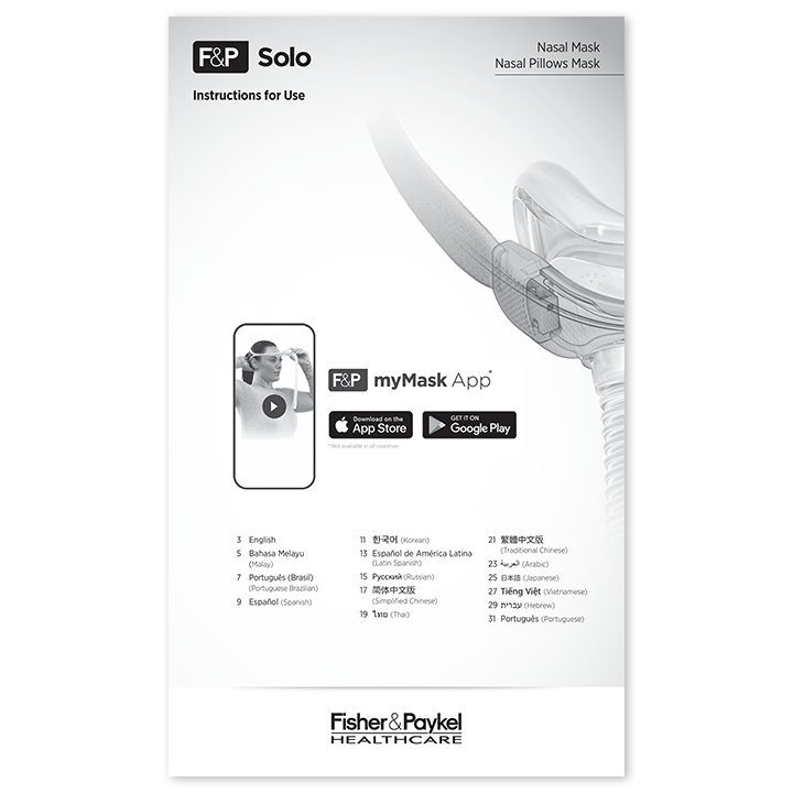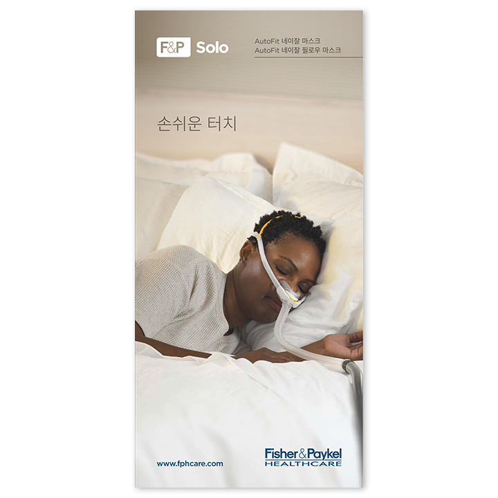 F&P, F&P Solo, Solo, AutoFit, AutoLock 및 myMask는 Fisher & Paykel Healthcare Limited의 상표입니다. 특허 정보는 www.fphcare.com/ip를 참조하십시오