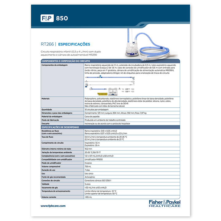 F&P, Neopuff, Evaqua 2, FlexiTrunk e Optiflow são marcas registradas da Fisher & Paykel Healthcare Limited. Para obter informações sobre patentes, consulte www.fphcare.com/ip