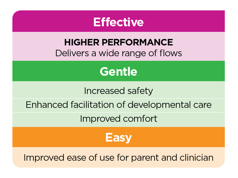 Optiflow Junior is a nasal cannula designed specifically for neonates, infants and children. In 2009, existing cannula designs left room for improvement. Our talented product development team came up with a new design that had the patient and caregiver at the centre.